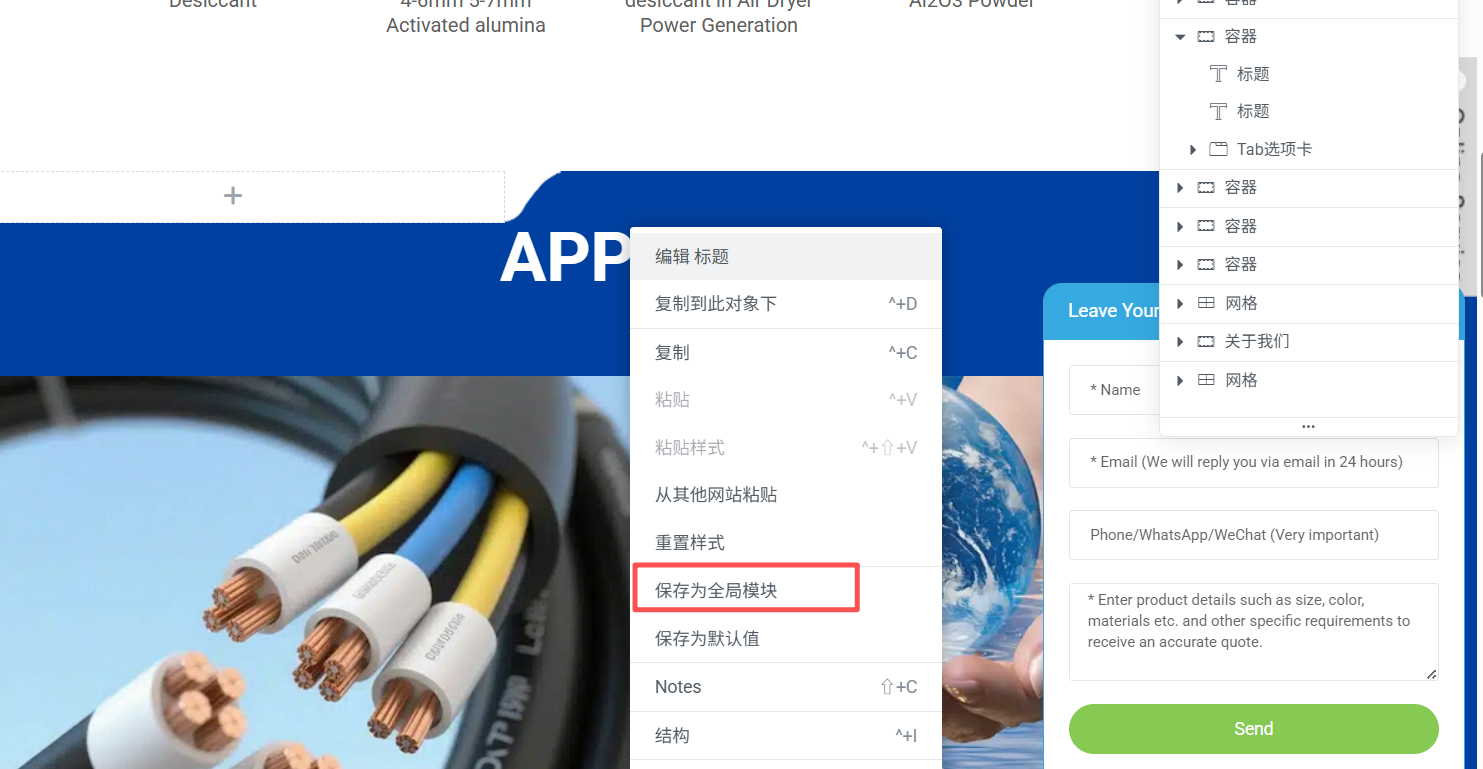 例如,你可以将“联系我们按钮”、“页脚订阅表单”、“公司简介模块”等保存为全局组件,轻松应用到任意页面中。