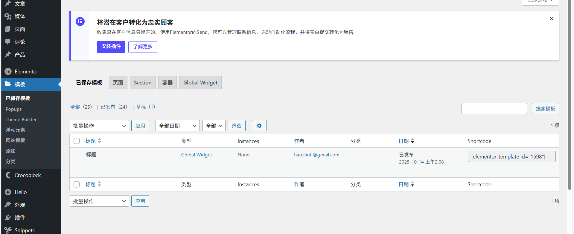 一、什么是 Elementor 全局组件(Global Widgets)?