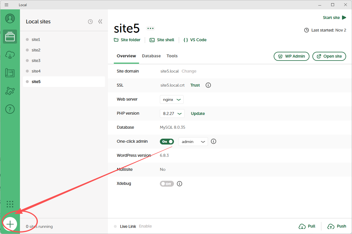 - Add Site(添加站点):创建新的 WordPress 项目